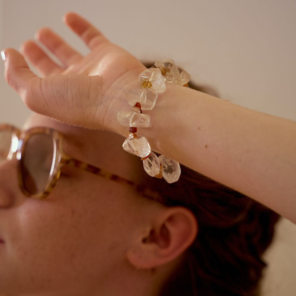 "This bracelet is not only gorgeous but surprisingly powerful. I often feel unbalanced, but since wearing it, my energy has felt more aligned. The mix of stones is thoughtfully chosen, and I love how each one corresponds to an element. It’s like wearing harmony on my wrist."