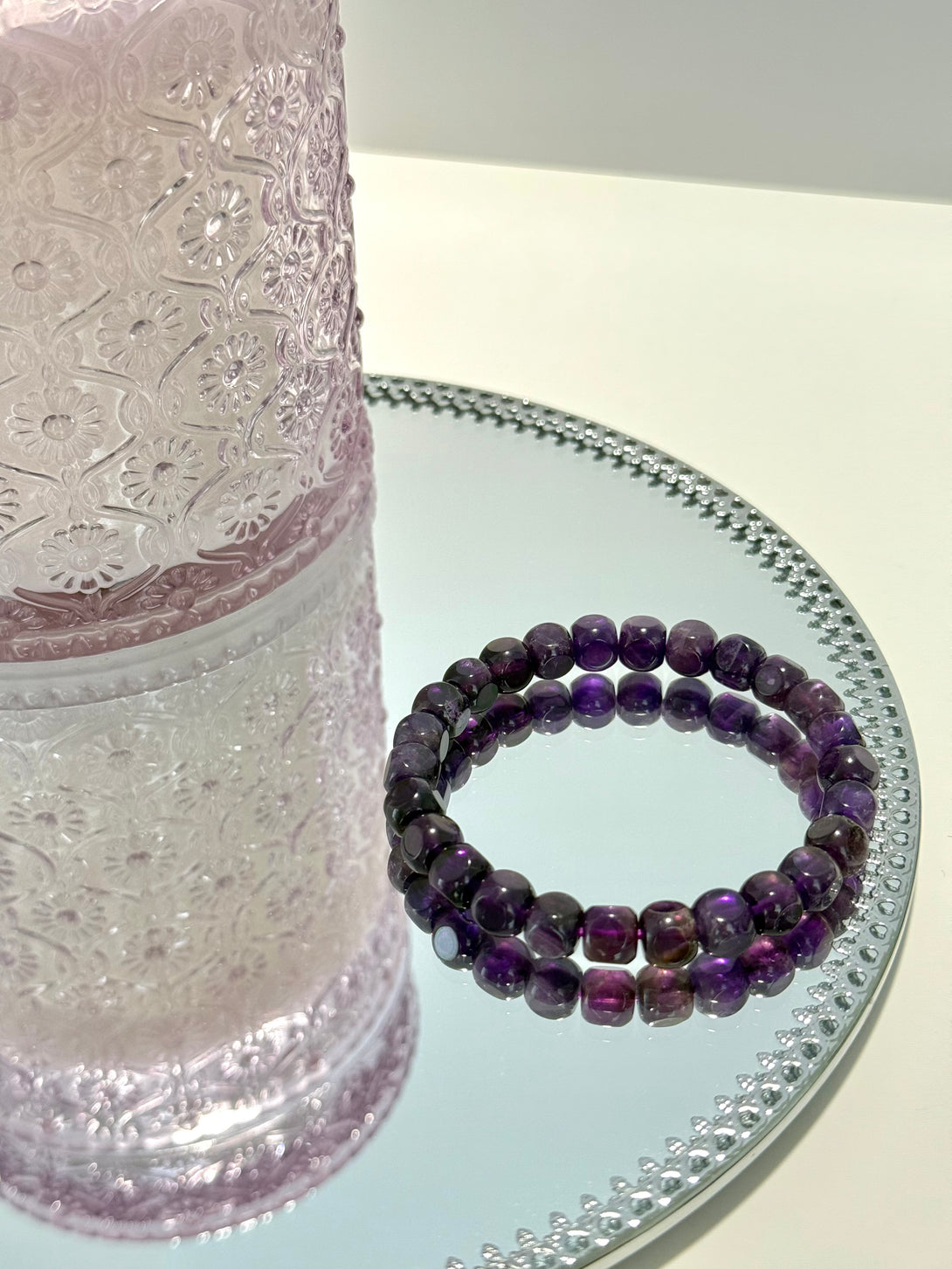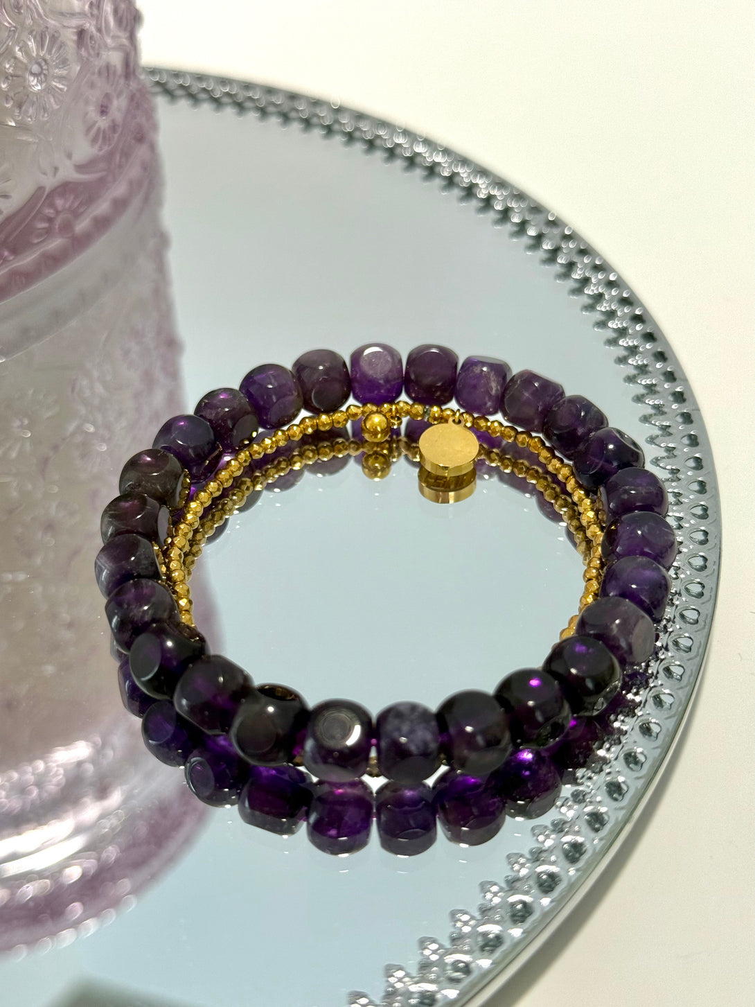 Whether worn on its own for a bold statement or paired with other bracelets for a layered look, this Uruguay Amethyst piece exudes sophistication and powerful healing energy.